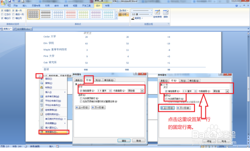 第三,同时在行设置那边还要打消勾选:许可跨页断行。若是只想对某一行设置固定的行高,就点击上一行或下一行,找到要设置的行后再具体设置这一行的固定值。