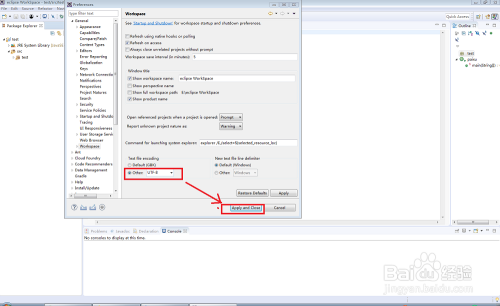 将"text file coding"编码体例点窜为【Other】--【UTF-8】,再点击"Apply"应用就可以了。