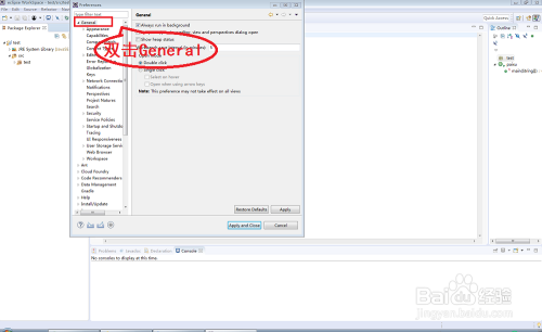 在【Preferences】对话框,点击右侧的【General】按钮进行睁开。
