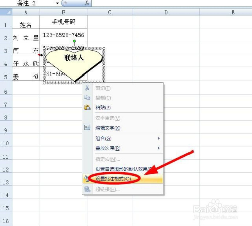 若是还想对批注做进一步的美化,我们可以选中批注的边框后,利用鼠标右键,单击右键菜单中的“设置批注格局”