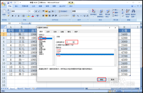 呈现设置单位格格局窗口,点击【数值】,在“小数位数”改为【0】,在点击【确定】。