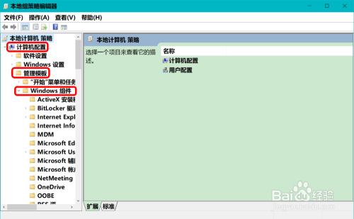 在当地组策略编纂器窗口中,我们睁开【计较机设置装备摆设】-【办理模板】-【Windows 组件】;