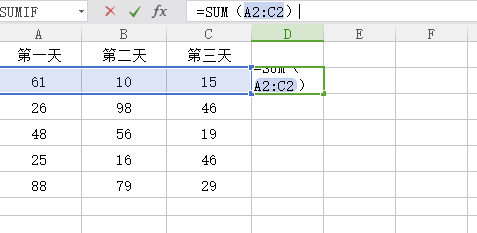上面的是行乞降的演示,列乞降也是和上面的步调是一样的,只是选定的区域分歧。