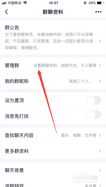 进入群聊资料之后,选择“办理群”,如图所示。