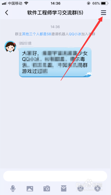 进入群聊后,点击群聊右上角的菜单按钮,进入群聊资料,如图所示。