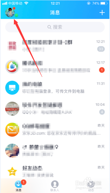 首先,打开并登录qq之后,进入qq的首页,然后点击qq左上角的头像,进入qq小我中间,如图所示。