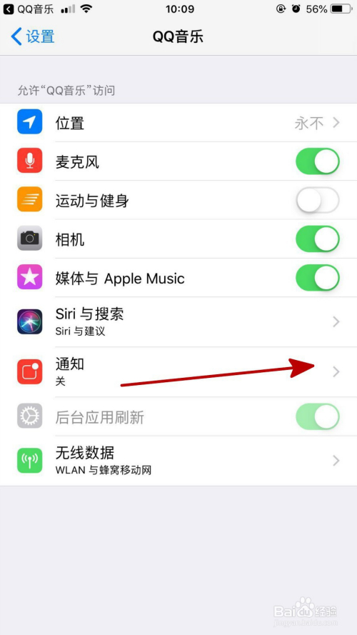 然后按照提醒进入手机设置中打开“通知”开关并返回到QQ音乐设置页面中,如下图