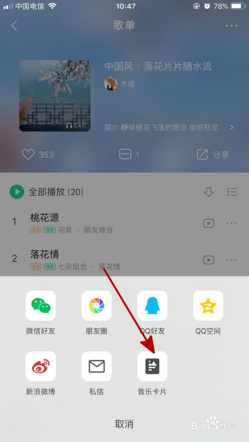 打开后会主动生当作音乐卡片,然后我按照本身的需要来选择分享,如下图
