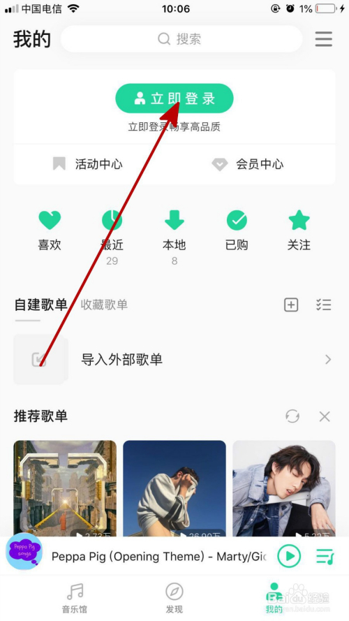 登录当作功后在“我的”页面中点击本身喜好的歌单打开,如下图