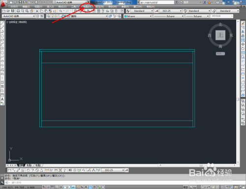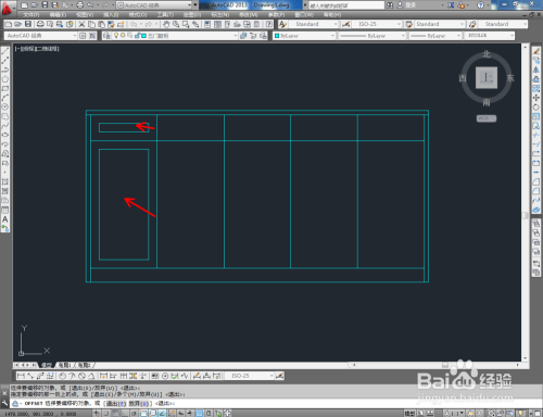 点击右边东西栏中的【偏移东西】,在号令栏输入偏移数值:25后,对图案顶边和摆布两侧边进行标的目的内偏移。号令栏中输入偏移数值:80,对底边进行标的目的上偏移。完当作后,按图示调整好选边上的端点位置(如图所示);