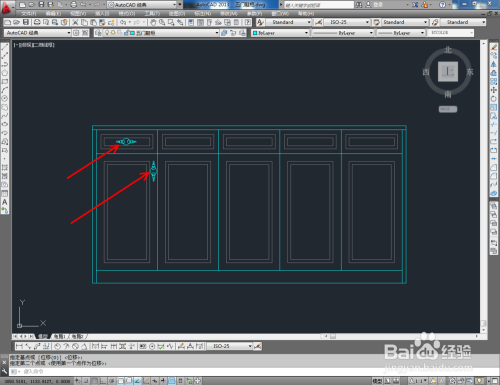 最后,将建造好的拉手图块导入文件并调整好拉手的位置。完当作细节部门的建造后,我们的五门鞋柜平面图便全数建造完当作。