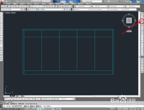 点击【偏移东西】,在号令栏输入偏移数值:150后,对图示选边进行标的目的下偏移并调整好选边上的端点位置;