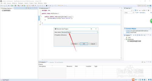接着就会呈现一个“Rename Java Project”的弹框,直接输入新的项目名称就可以了,然后点击“OK”,项目名称就点窜当作功了,如图所示。