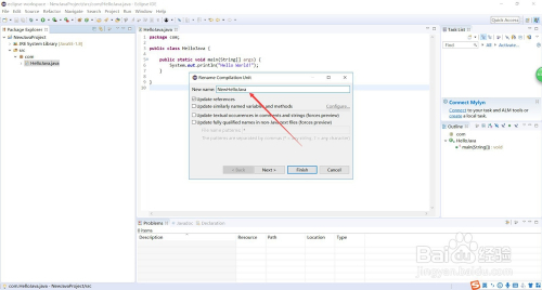 接着,会弹出一个“Rename Compilation Unit”的弹框,直接输入新的类名就可以了,然后点击“Finish”,如图所示。