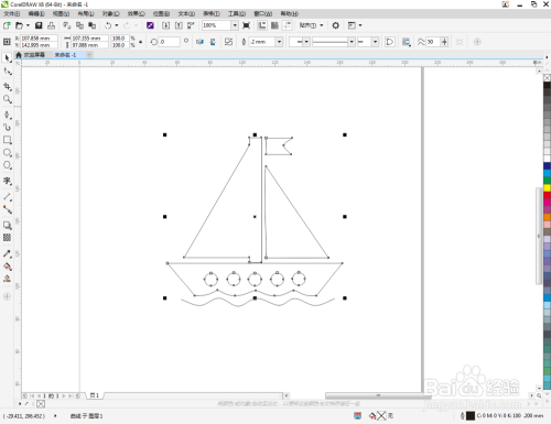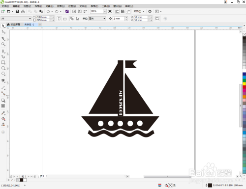 点击【选择东西】,船体和圆形图案后,点击【移除前面临象】将圆形图案部门移除。完当作后框选风帆本家儿体部门的说有图案,点击【归并】将图案归并为一体后,鼠标左键点击右边色块中的黑色将其填充为黑色。最后,将海浪曲线的轮廓宽度设置为:2,这样我们的风帆图标便全数建造完当作了。