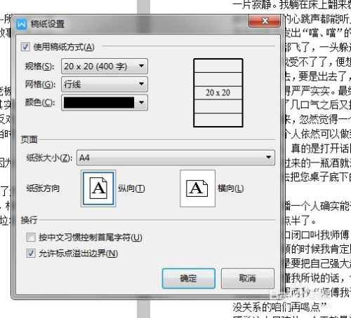 在出来的对话框中,勾选利用稿纸体例后下面就可以选择样式了