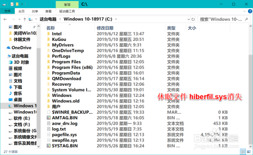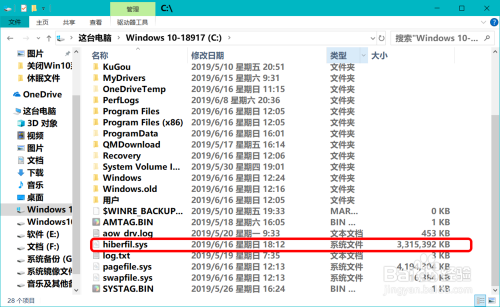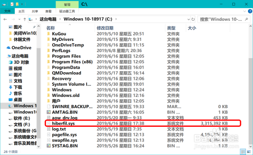 Windows10系统休眠文件在系统盘中的位置
