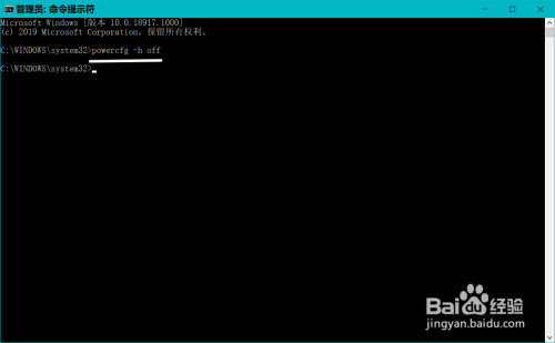 复制powercfg -h off号令到号令提醒符窗口中,按下键盘上的回车键,不会显示什么内容;