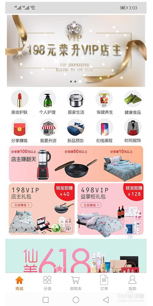 4、点击益美康APP“商城”按钮,返回商城首页,查找需要采办的商品,美妆护肤·时尚服饰·营养健康日用洗护·居家糊口分类清楚,一秒找到心仪商品。如下图所示;