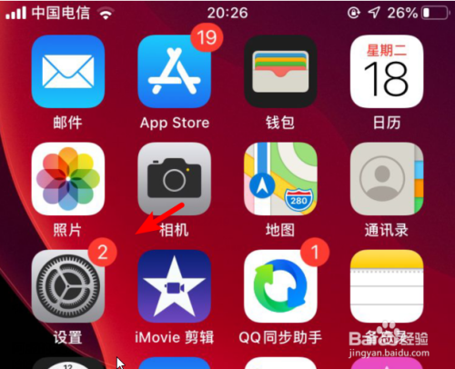 解锁苹果手机进入系统后,在手机中点击设置的图标进入。