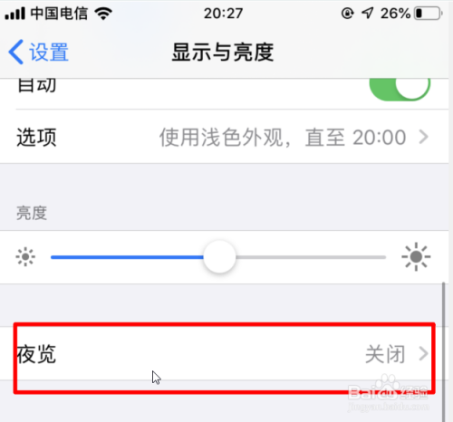 点击后再显示与亮度中,我们选择夜览的选项进入。