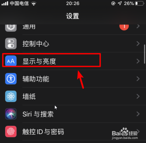 进入手机设置列表后,我们选择显示与亮度的选项。