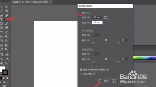 双击“矩形网格东西”,Adobe illustrator会弹出设置窗口,对网格进行简单的设置后,即可点击确定,这样绘制的网格就会遵照我们的设置生当作