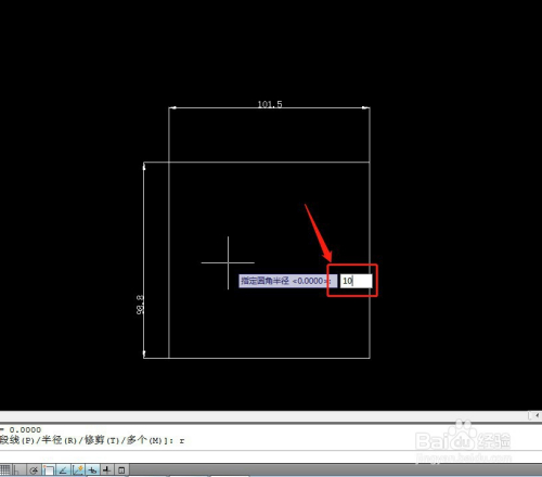 进入圆角号令后,然后输入r,暗示的是用半径来确定圆角的大小,然后按回车键