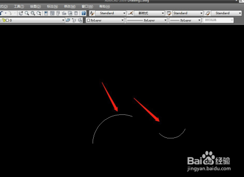 打开CAD软件,然后在画图区域绘制几段圆弧。
