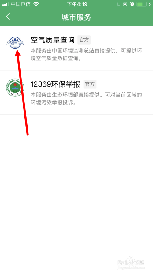 鄙人面这个页面里,点击 空气质量 查询 。这里可以查询到当前我们地点位置的 空气质量数据 。