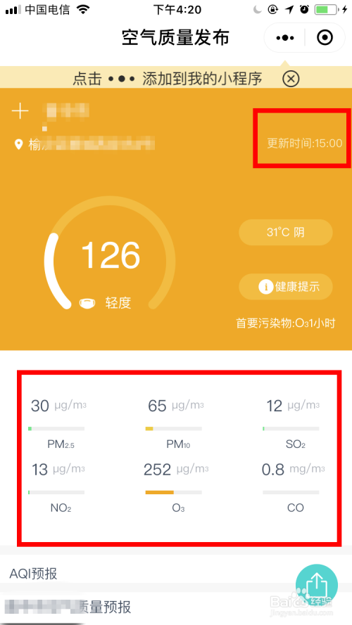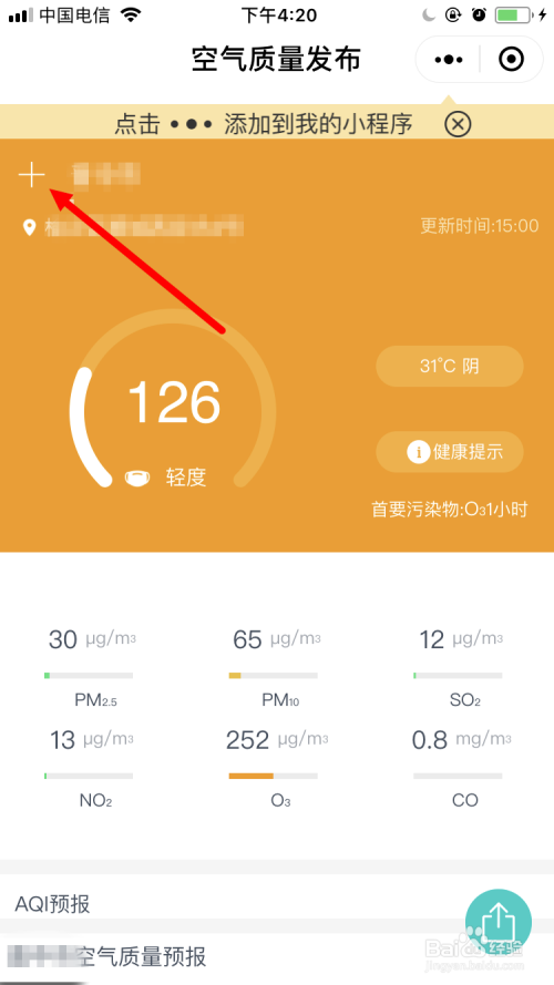 下面要跟大师分享的是的经由过程微信查看空气质量的方式。