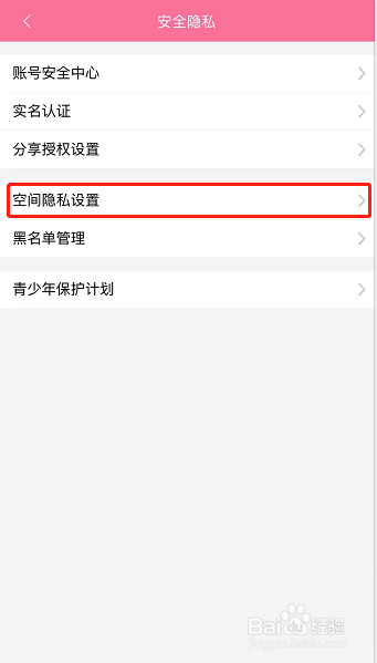 点击后进入平安隐私本家儿页,在页面下找到空间隐私设置一栏,点进去!