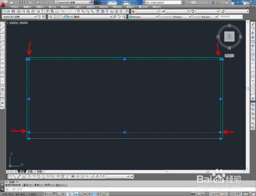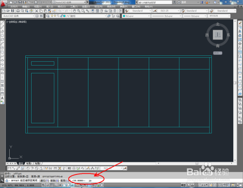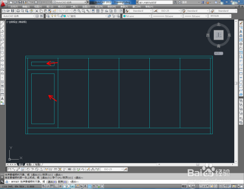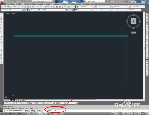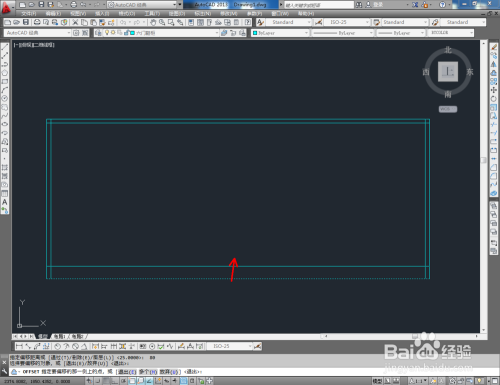 点击右边东西栏中的【偏移东西】,在号令栏输入偏移数值:25后,对图案顶边和摆布两侧边进行标的目的内偏移。号令栏中输入偏移数值:80,对底边进行标的目的上偏移。完当作后,按图示调整好选边上的端点位置(如图所示);