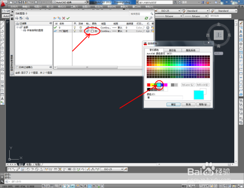 打开AutoCAD 2013软件,点击【图层特征办理器】,点击【新建图层】,将图层定名为:六门鞋柜。点击色块,按图示设置一个图层颜色,完当作六门鞋柜图层的设置(如图所示);