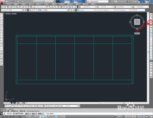 点击【偏移东西】,在号令栏输入偏移数值:150后,对图示选边进行标的目的下偏移并调整好选边上的端点位置;
