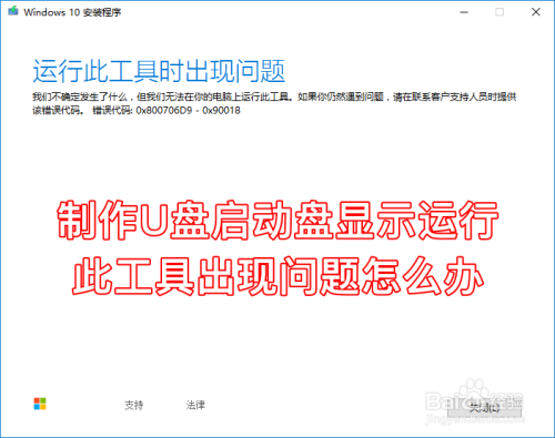 当上述前提都知足时,建造U盘启动盘若碰到下图所示的“运行此东西时呈现问题”的提醒,我们可以先封闭该安装程序。