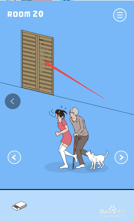 点击页面左侧的箭头直到呈现鄙人图所示的房间内,点击页面中的柜子收成此中的火柴道具。
