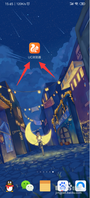 打开你心爱的手机,找到你已经下载好了的UC浏览器,如图所示