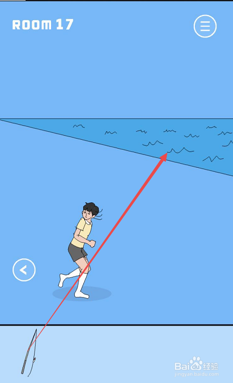 拿到鱼竿之后到房间的右侧,可以看见这里有一片海,所以可以想到是需要用鱼竿来垂钓。点击鱼竿然后将其移至大海的边缘处,这样弟弟就会主动拿起鱼竿垂钓了。
