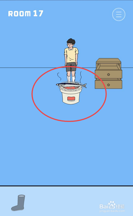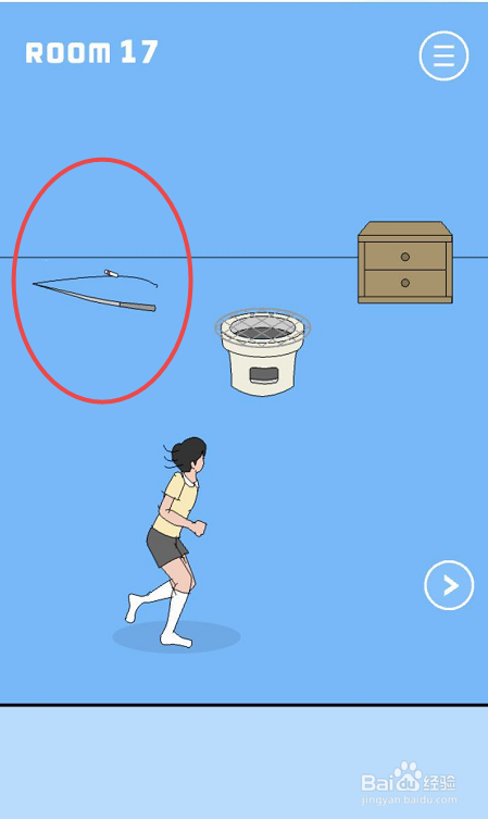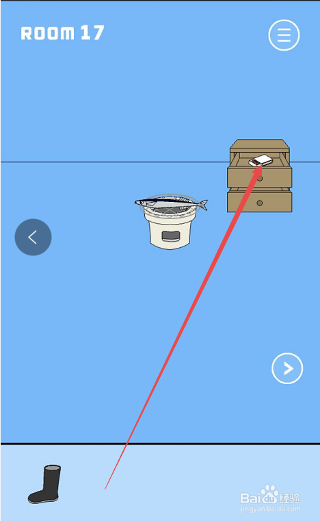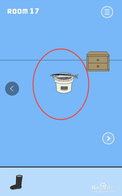 点击布丁被吃失落了手游的第十七关,起头第十七关的遁藏姐姐追赶的脑洞挑战。在第十七关的具体挑战页面内可以看见这个房间内有一个鱼竿、一个柜子,还有一个烤炉。首先点击左上角的鱼竿收成鱼竿道具。