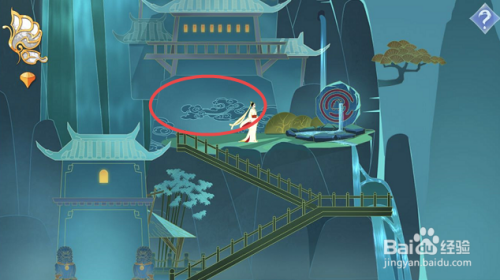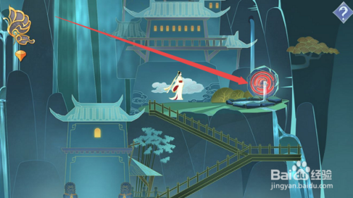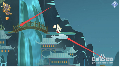 之后让游戏人物登上下图所示的楼层,在这里可以看见有多少没有颜色的云彩,点击并长按云彩之后云彩就会接收白色,之后点击白色的云彩,游戏人物就会乘着云彩继续标的目的上移动。当达到下图二所示的位置时云彩就不移动了,只能经由过程点击让游戏人物来到山顶。