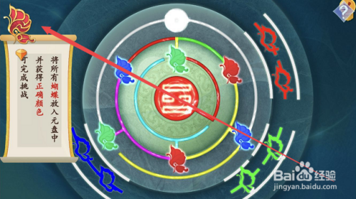 当回到泉眼的高度处时,点击泉眼之后会呈现一个放置蝴蝶的小游戏,将蝴蝶按照下图三所示放好就可以收成红色。