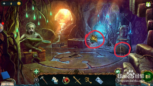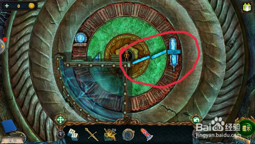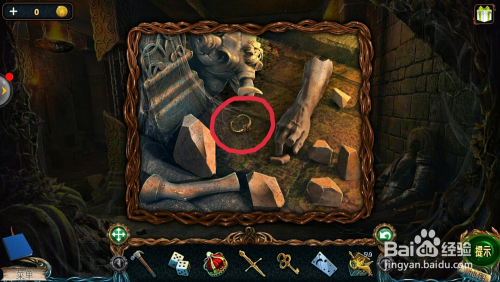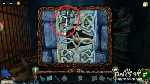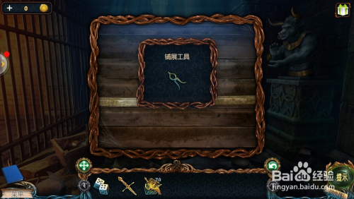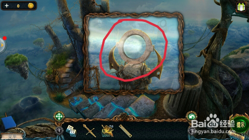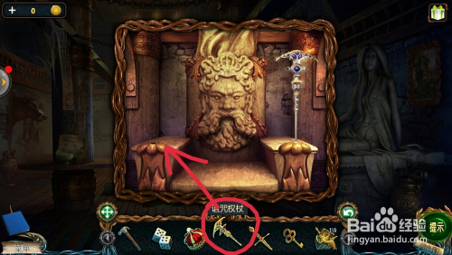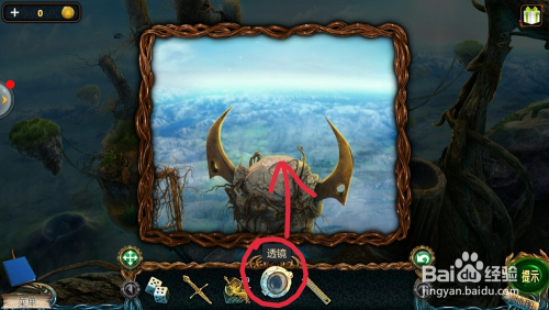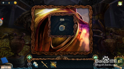 点击左边的雕像眼睛,用【铺展东西】打开眼睛,拿到【透镜】。