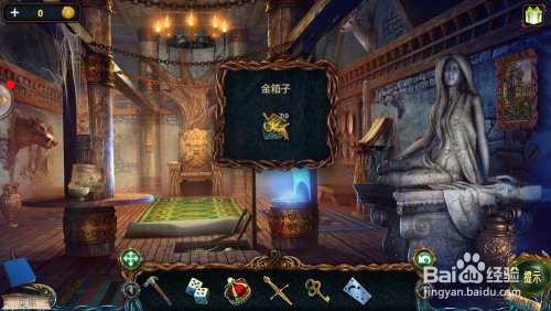 点击右边的雕像,点击下面的谩骂黄金,拿到第四个【金箱子】。