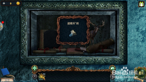 点击地上的石块,把最后一个元素【出亡所“砖”】,点击上面的金角,拿到第八个【金箱子】。