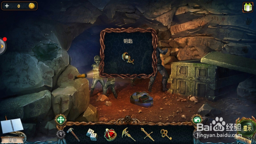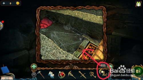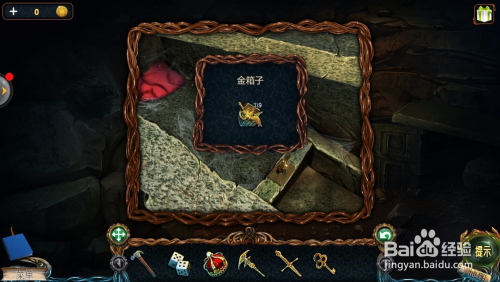 点击棺材右边的箱子,用【钥匙】打开,拿到第一个【金箱子】。