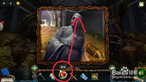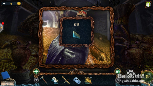 点击右边的国王雕像,把【皇冠】放在国王头顶,拿到【石碑】;