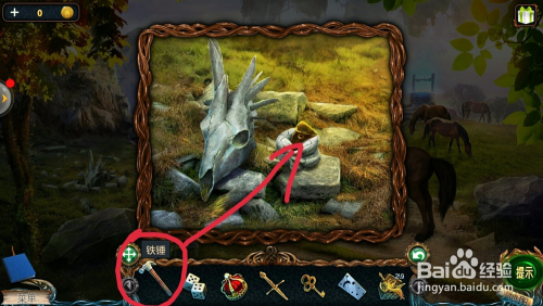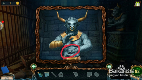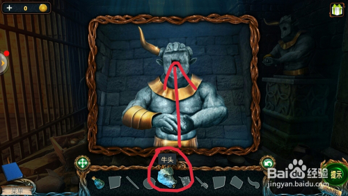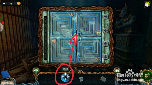 在地上拿到的【牛头】和【牛角】安进牛雕像上,拿到【磁铁】;