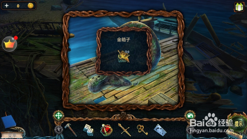 点击右边的破船,点击金网,拿到第五个【金箱子】。