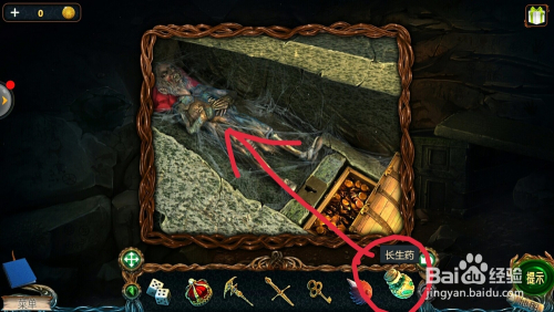 点击棺材,把【长生药】倒在尸身上,拿到【钥匙】;